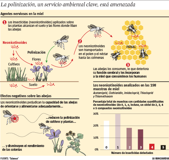 Los neonicotinoides se usan para combatir ciertas plagas y quedan en las plantas contaminando el polen